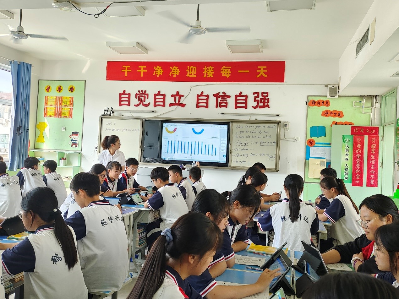 靳亞濛老師通過AI數(shù)字人、學生作品展示等多樣化的教學手段,激發(fā)學生的學習興趣和語言運用能力;鄭婕老師則通過生動的案例和互動式教學,幫助學生更好地理解和記憶歷史知識;朱璐瑩老師基于學生行為數(shù)據(jù),系統(tǒng)智能推送分層練習、微課視頻與拓展任務,實現(xiàn)“千人千面”的學習支持。張思敏老師巧妙設計學生平板搶答、投票、作品提交等數(shù)據(jù),精準定位薄弱環(huán)節(jié),動態(tài)調整教學策略。這些場景印證了一個趨勢:智慧課堂的終極目標,不是用機器取代教師,而是讓教師成為“超級個體”——既能以數(shù)據(jù)洞察學情,又能以人文滋養(yǎng)靈魂;既能立足課堂,又能聯(lián)動全域資源。4節(jié)精彩的課堂效果也展示了ESWI智慧課堂云系統(tǒng)對教學提質增效的賦能。