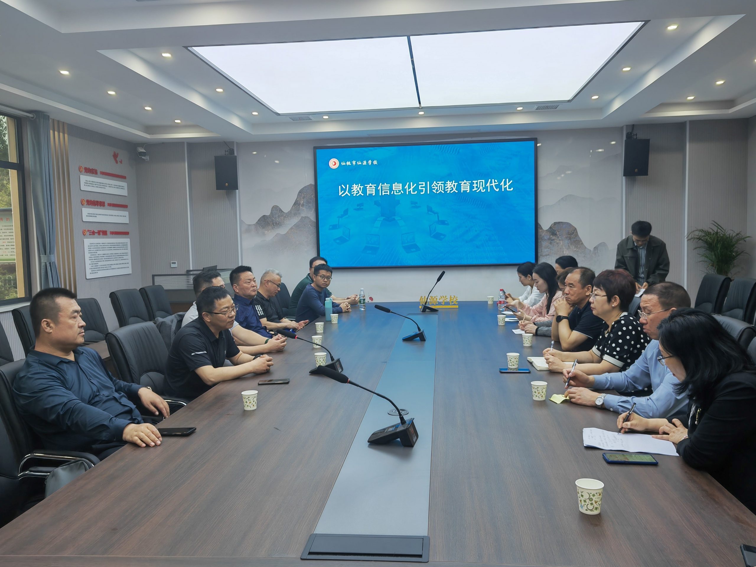 陽春白日風(fēng)在香,鳥語三月喜迎朋。4月18日上午作為智慧課堂觀摩研討會的延申與深度交流環(huán)節(jié),仙源學(xué)校再次迎來了深圳實驗學(xué)校李笑梅及學(xué)校各學(xué)科帶頭人,河南科達教育集團總經(jīng)理方紅民及集團校四校區(qū)校長、骨干教師,北京東方科達教育科技有限公司總經(jīng)理馬宇飛等一行30人參觀交流,仙源學(xué)校鐘偉校長及武身月副校長全程陪同參與。